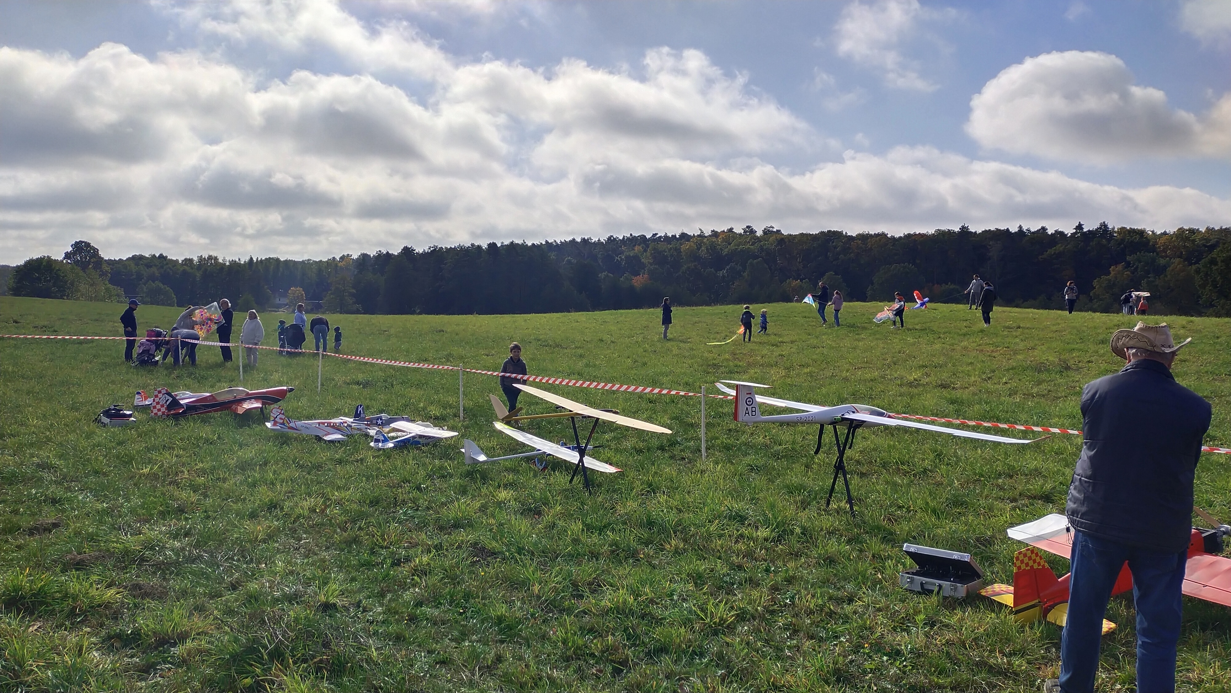 Warunki panujące na łące są doskonałe dla latawców, ale nie pozwalają na starty modeli z napędem spalinowym, więc w mogliśmy pokazać w locie jedynie modele z napędem elektrycznych. Dlatego zademonstrowaliśmy w locie głównie motoszybowce. Aby pokaz był interesujący dla publiczności, wzięły w nim udział szybkie modele przeznaczone do lotów na zboczu, które (jak wiedzą znawcy) kapitalnie świszczą w szybkim locie oraz umożliwiają zademonstrowanie akrobacji. Oprócz nich latała też elektryczna Ekstra, półmakieta Thunderbolta oraz popularny Fun Cub. Aby udowodnić, że latanie niektórymi modelami jest łatwe, nasz klubowy kolega Andrzej oddał stery w ręce osoby, która zgłosiła się z publiczności. Odwagą wykazała się nastoletnia dziewczynka, która jedynie instruowana przez Andrzeja, samodzielnie latała przez kilka minut modelem samolotu oraz wykonała prawidłowe lądowanie.